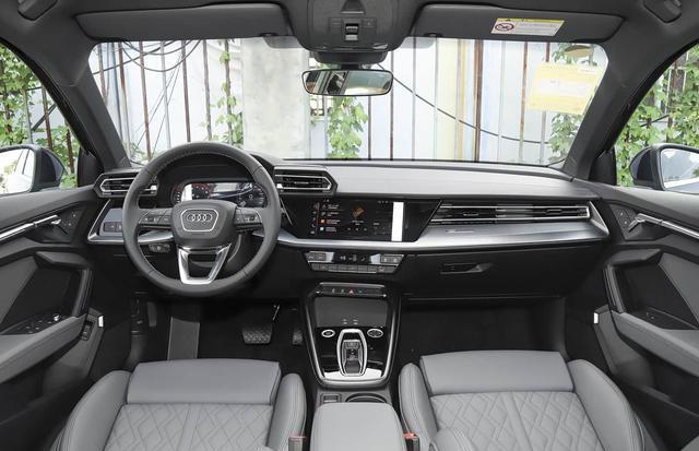 进入车内,新车采用了双联屏,10.25英寸液晶仪表+10.1英寸中控屏(分辨率1920×720),搭载第三代MMI系统,支持5G联网与AR导航,科技感表现更加的出色。并且语音助手支持多指令识别,无线CarPlay连接速度提升,新增60W快充Type-C接口。座椅采用了运动造型设计,并且标配再生纤维面料(可选真皮/Alcantara),主驾带8向电动调节,三厢版后排坐垫加长25mm。配置方面,新车还有着30色氛围灯支持动态呼吸模式,新增赤陶红/匠心蓝等4种内饰配色。